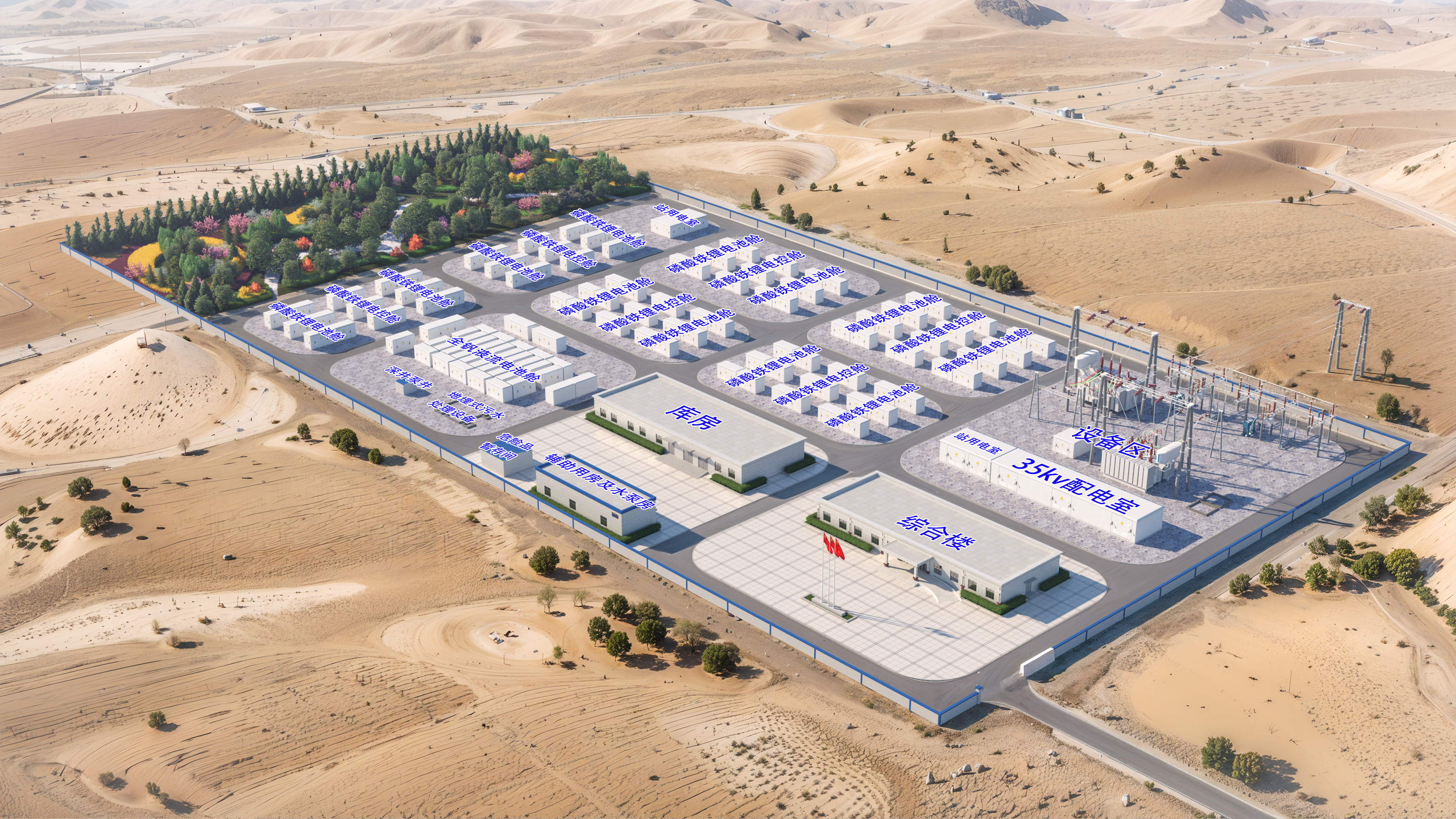 由中冶京誠承建的阿拉善電網側儲能電站項目是阿拉善盟儲能工程領域的一項重大突破,規劃建設10萬千瓦儲能裝機、40萬千瓦時儲能容量。項目僅用88天完成建設攻堅,實現全容量并網及動態調試,成功通過測試轉商。項目投用后充分發揮削峰填谷作用,緩解電力供需矛盾,對優化地區能源結構、加速“雙碳”目標落地具有重要意義。
